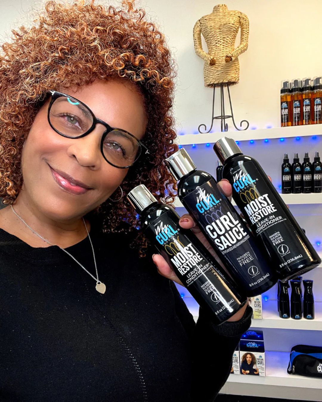 Our formulas are designed to work together as a professional curl layering system — giving you moisture, balance, and hold without buildup.
