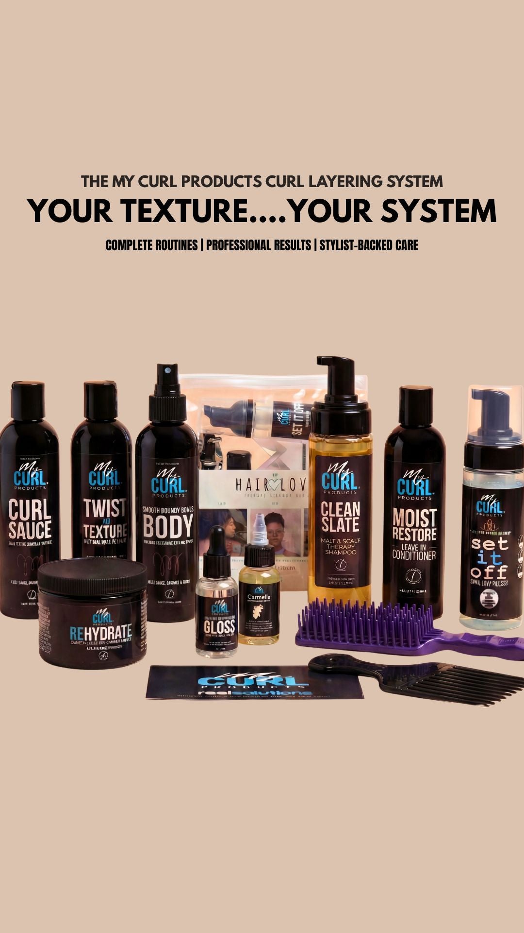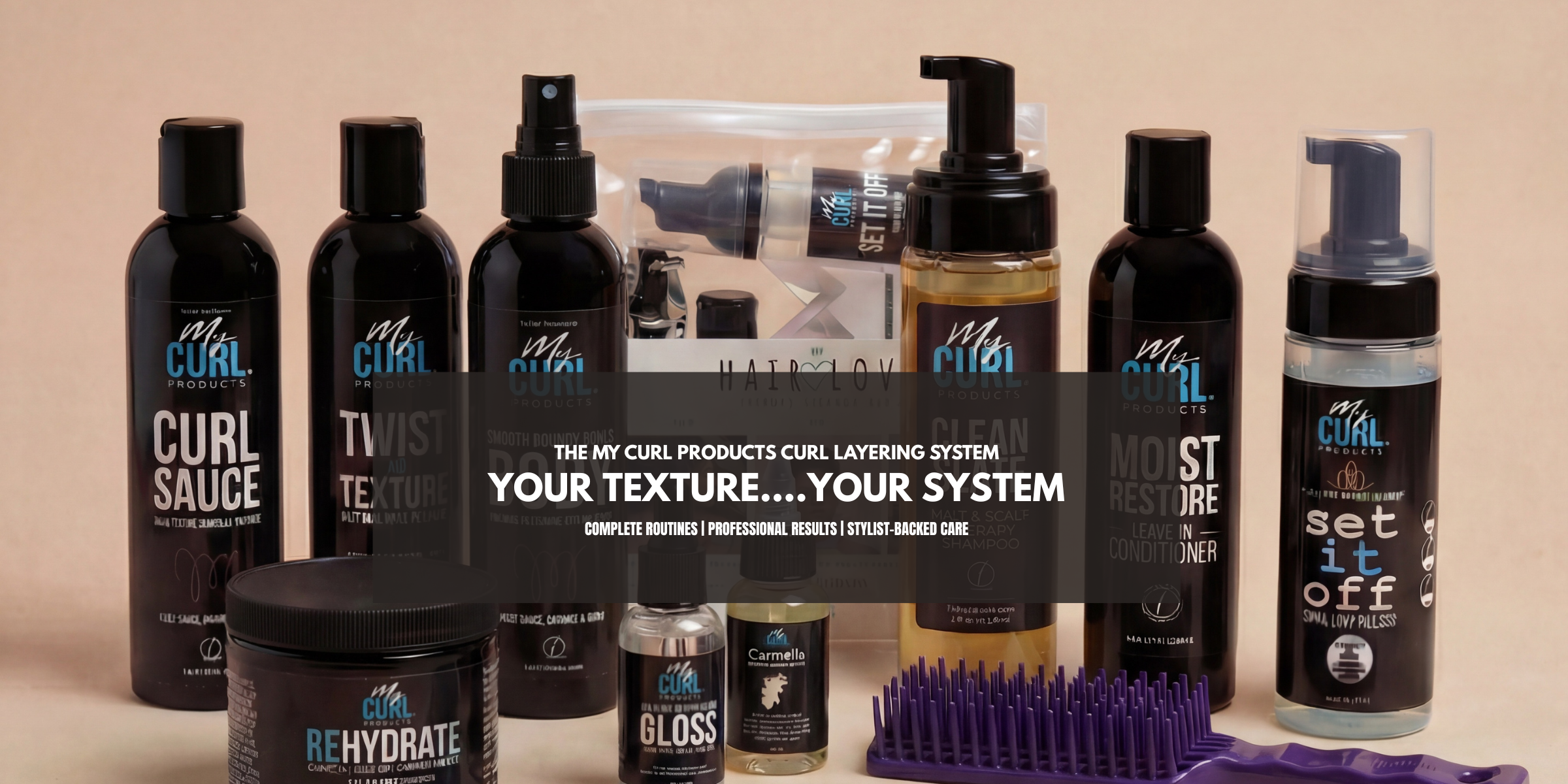 Our formulas are designed to work together as a professional curl layering system — giving you moisture, balance, and hold without buildup.
